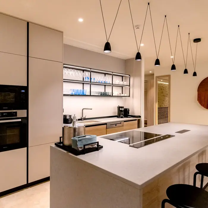 Ausstattung: Für 8 Personen; 4 Schlafzimmer, 4 Badezimmer, Wohnzimmer, Küche, Swimmingpool, Veranda; Weinkühler, Grill, Waschmaschine/Tumbler, Air-Conditioning, 3 Parkplätze, WiFi, 55″-TV.